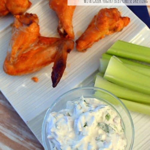 - Remove the chicken wings from the oven, plate, and serve with your favorite ranch or bleu cheese dressing, carrot and celery sticks!